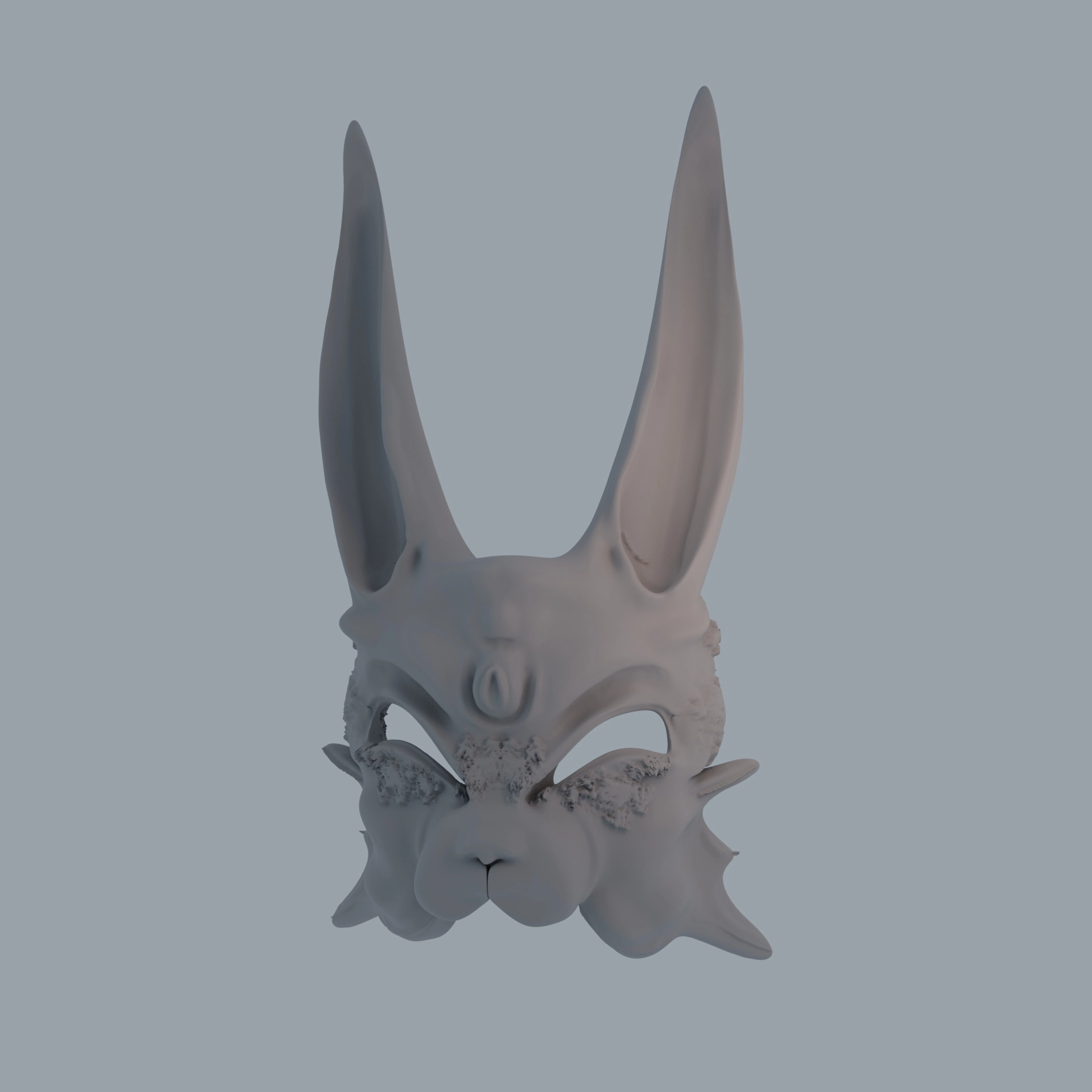 This is a high poly sculpt of a rabbit-cat hybrid mask for my digital sculpting class.